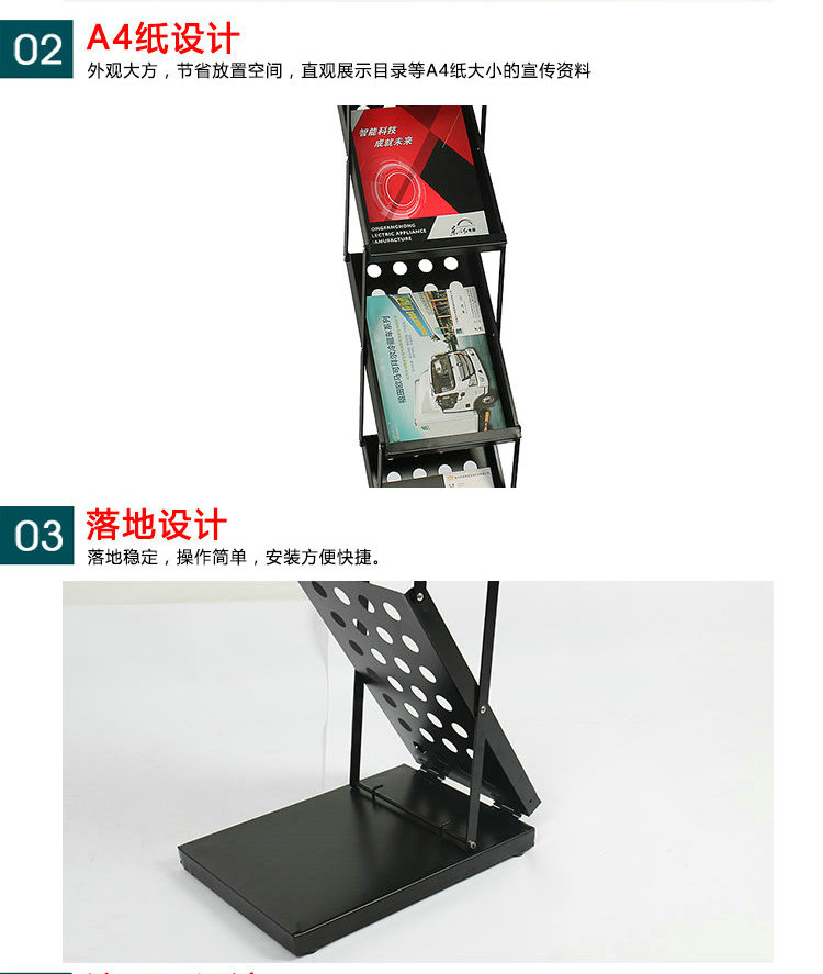 支持3层A4资料展示,资料架可折叠。