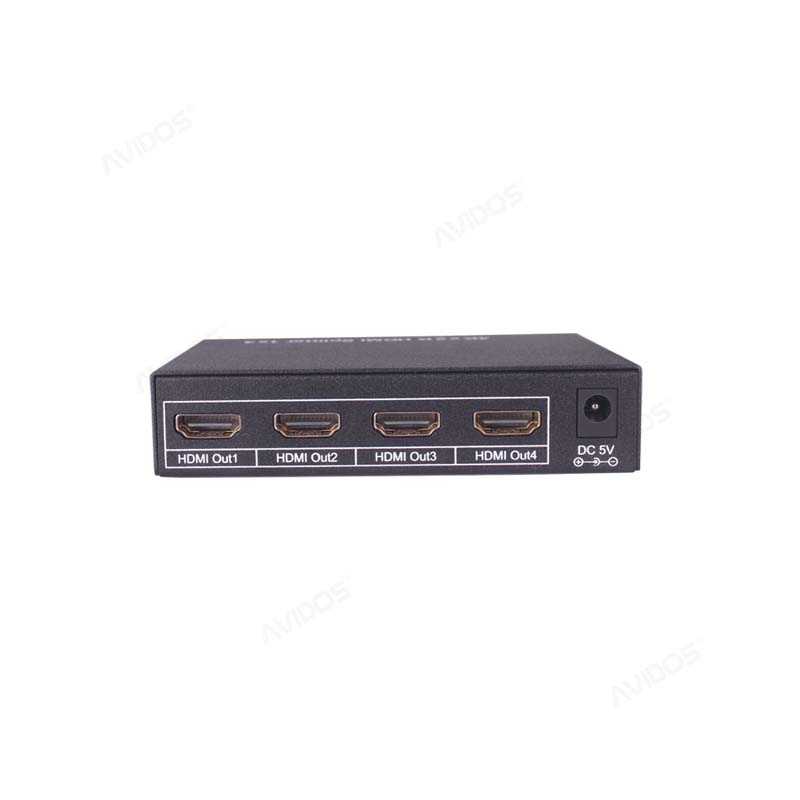 AD-104H支持把来源于单个HDMI高清输入信号无损且同时分配至4个HDMI输出端口,