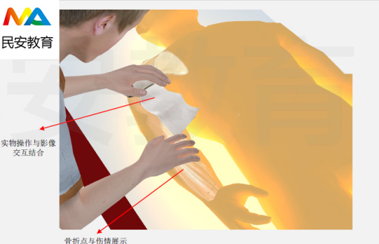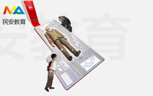 本系统利用增强现实虚拟技术,将人体急救仿真技术进行数字化提升,观众看到的不再是带班单一的人体模型,而是在虚拟技术增强下的老人、孩子、青年,并可实际观看到其生理反应,伤口情况与身体信息,对人体急救训练进行系统化讲解与学习,是学生、家庭、社区进行人身伤害与突发性疾病急救训练的最佳工具产品。
