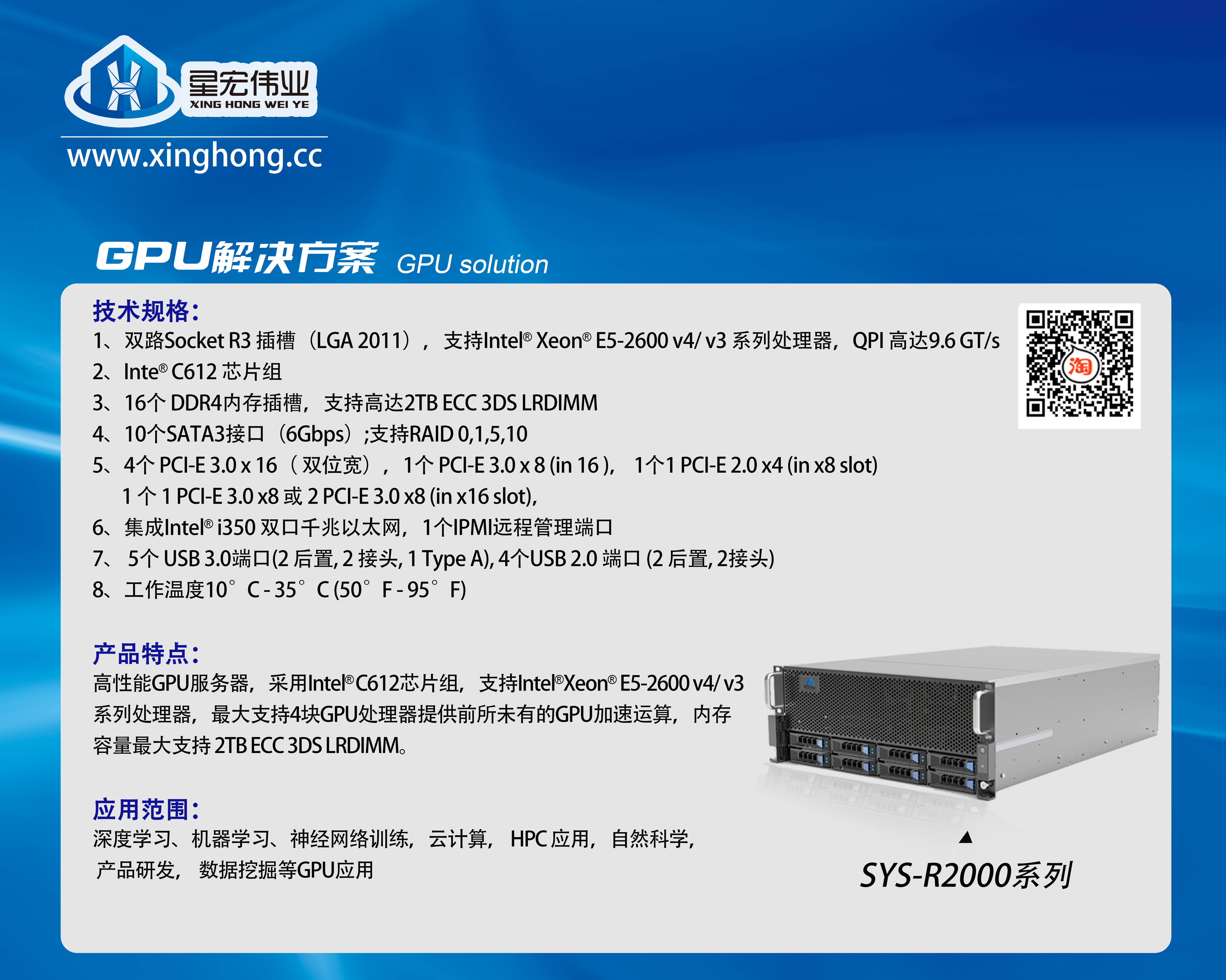 星宏伟业4U8盘位机箱4路GPU服务器