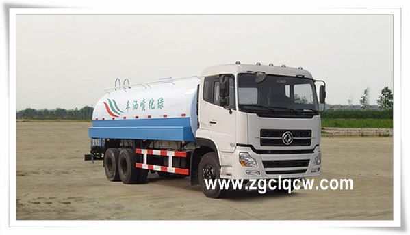 洒水车前冲(喷)后洒,带侧喷,罐体后带工作平台,平台上安装绿化洒水炮,洒水炮可全方位旋转,可连续调成直冲状、大雨、小雨、毛毛雨,带安全护栏,配备全国质量评比第一名的杭州威龙大功率专用洒水泵,泵可自吸自排,安装过滤网,带消防接口,可通过消防栓进水,带自流阀,随车选装20米绿化卷盘,可喷洒农药,罐体金属漆。