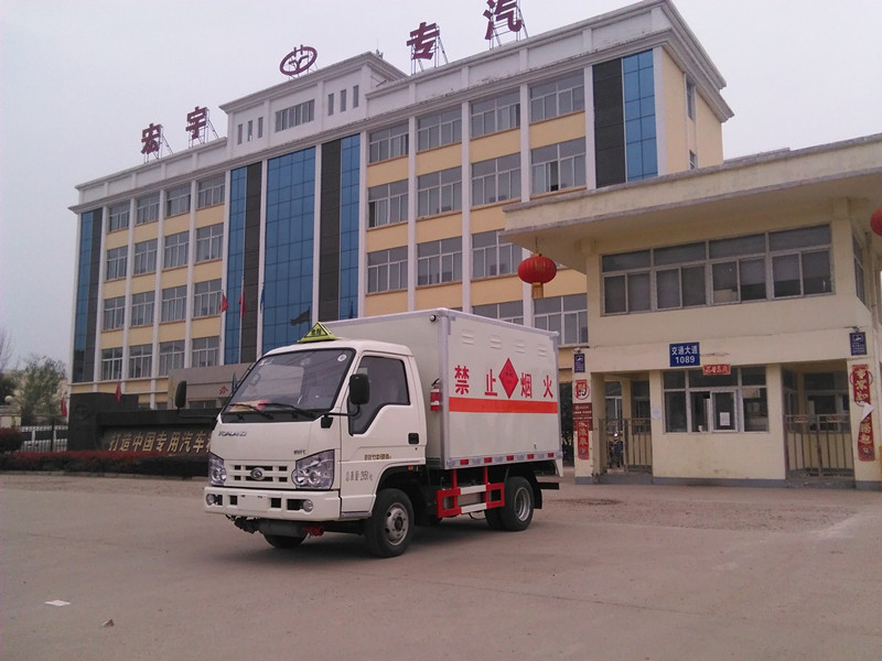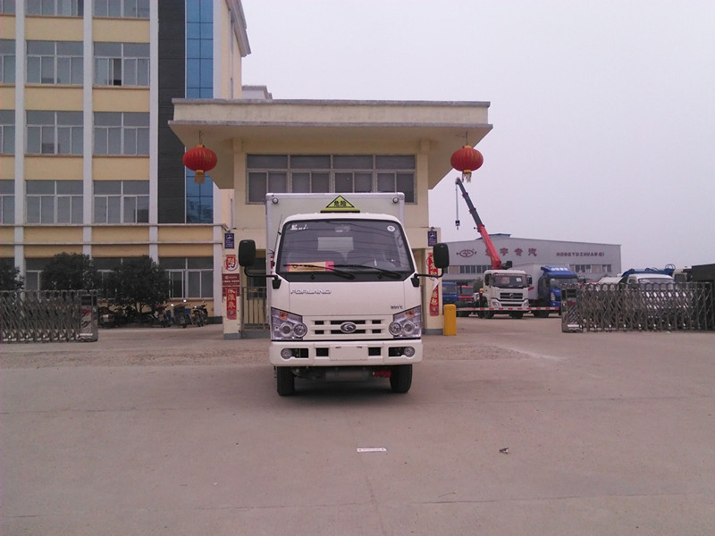 爆破器材运输车厢体选开侧门和隔仓,特殊车型选装抗爆容器筒或者抗爆容器厢,专门用于雷 管运输。本公司专业生产吨位从0.2吨到9.9吨可选,底盘选用国内大品牌东风、江铃、五十铃、福田、江淮及两驱、四驱等车型。