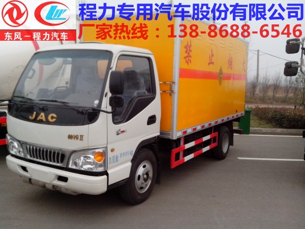 防爆车也叫烟花爆竹运输车,雷管运输车,器材运输车,民用防爆车它是根据国家有关部委对器材运输的规范和用户的要求而研制生产,产品符合国防科工委关于《器材运输车安全技术条件》的要求。是一种安全可靠,十分理想的器材运输的专用车辆。具有厢体强度高、防火阻燃、防雨、防止静电火花、烟火报警和防盗报警等主要功能。如今。器材运输车已经脱离原来的平板运输,而改为厢式运输车。