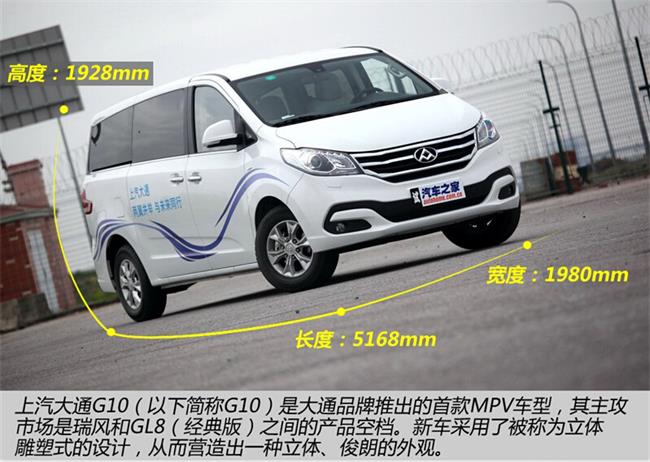 上汽大通G10(以下简称G10)是该品牌旗下的首款MPV车型,从厂商的角度来看,想将其定位成一款宜商宜家的全能型产品,而就实际体验的感受而言,G10给人的整体感觉更偏重于中高端商务接待用车,在外观设计上,厂商的确是下了不少功夫,立体雕塑式的车身造型营造出一种饱满、俊朗的感觉,其庞大的身形在同级别车型中也显得十分突出。