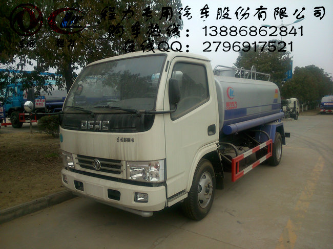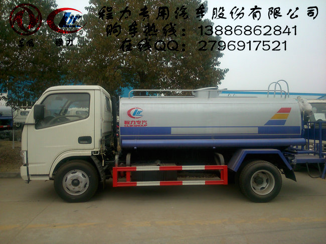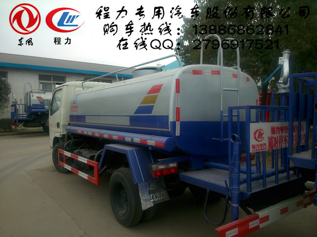 东风洒水车的基本组成:罐体,取力器,专用自吸式洒水泵,管网,喷洒出口,工作平台,二类底盘.