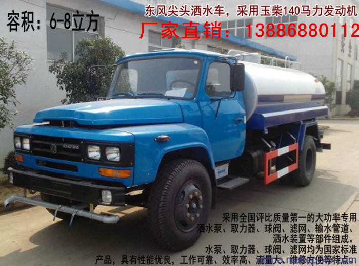 东风尖头140洒水车 :罐体容积;8-10吨 发动机:玉柴4缸140马力;玉柴6缸160马力;轴距:3950mm;轮胎:9.00-16 前桥2.8吨,后桥9吨