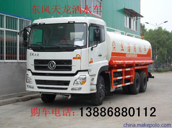 东风天龙洒水车:罐体有效容积20-25立方,前桥5吨,后桥10吨,可选装前桥5吨,后桥12吨,康明斯发动机,带自动空调,USB接口,高顶双卧。