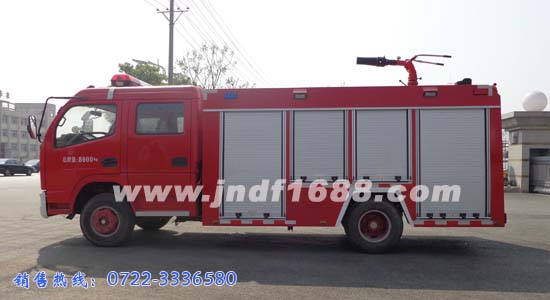 东风多利卡国五水罐消防车_3吨消防车_消防车价格★07223336580★整车型号JDF5080GXFSG30/A型水罐消防车,罐体容积:水2600L,该车采用东风多利卡EQ1090SJ8BDC二类底盘改装而成,车辆设计新颖,视野开阔,整体性好;水泵采用夹心取力方式,达到行进、灭火同步动作;消防泵型号:CB10/30;流量:30L/S;压力1.0Mpa.消防炮:泡沫消防车配置PL24型水-泡沫两用炮:流量:24L/S;压力1.0Mpa ;射程:水≥45m 泡沫≥40m;水罐消防车配置SP30型水炮,流量:30L/S;压力:1.0Mpa 射程≥55m,罐体载液量多,消防炮射程远,灭火范围大;驾驶员在驾驶室内一人即可同时完成车辆行驶与消防操作;适用于大中型城市狭窄道路,城乡结合部和农村等一般物质灭火,亦可作为城市道路喷洒,园林喷灌.更多消防车尽在www.51zjn.com