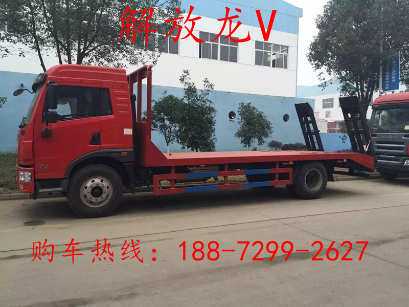 重汽王牌平板运输车可上蓝牌,可接6-7吨不可拆卸的工程机械运输车,像挖掘机,装载机,收割机等。如需详细参数价格可拨打电话:188-7299-2627咨询。