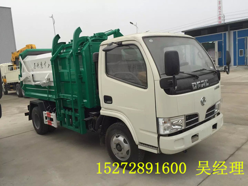 自装卸式垃圾车挂桶式垃圾车的特点是一个车能配几十个垃圾厢,能实现一台车与多个垃圾厢联合作业,循环运输,充分提高了车辆的运输能力,特别适用于短途运输,如环卫部门对城镇垃圾的清理、运输等。