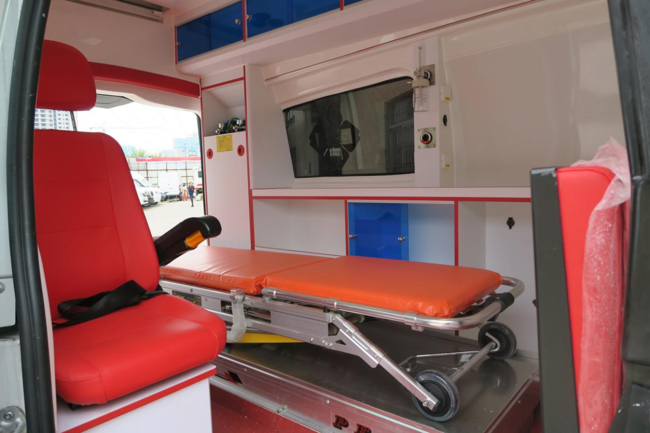 驾驶室与医疗舱安装分隔墙, 分开前后车厢, 分隔墙上有二个滑行窗 |