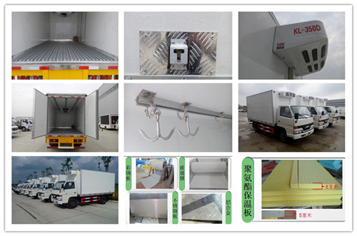 东风锐铃冷藏车(又叫东风轻卡冷藏车)货厢长度为4.15米,轻型发动机,102马力,7.00-16的轮胎,可上蓝牌,厢体采用粘接式结构,接触面积大,力分布均匀,密封性好,整体结构强度高,箱体内饰彩钢板,外饰玻璃钢,箱体具有保温性能好、环保节能、耐腐蚀、质量轻、寿命长、抗老化,耐复杂气候等优点其保温性能达到国际A级标准.并且箱体外观光洁度高。