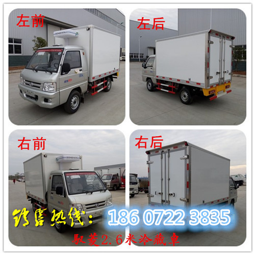 福田驭菱小型冷藏车:厢长度是2.6米,柳州五菱发动机,62马力,保温材料采用聚胺酯室外发泡切片式,箱板经压机高温、高压、抽真空一次成型。保温层厚度为8Cm。厢体采用粘接式结构,接触面积大,力分布均匀,密封性好,整体结构强度高,箱体内外饰玻璃钢,箱体具有保温性能好、环保节能、耐腐蚀、质量轻、寿命长、抗老化,耐复杂气候等优点其保温性能达到国际A级标准.并且箱体外观光洁度高,该车选配保鲜冷藏机组,可使箱体内温度达到-5度,配冷冻机组,可使箱体内温度达到-15度。