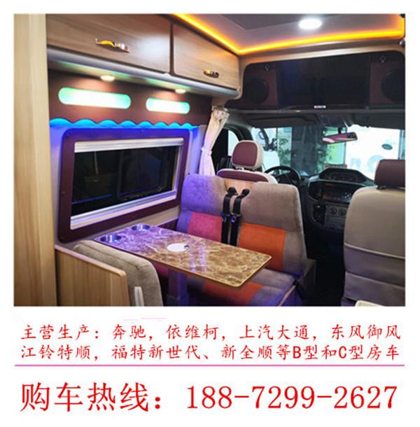 —内饰结构— 内部设计使用做工为实木家具和皮质软包 了车内的档次感,了车内的舒适性 让人一上车,就留下了非常不错的印象。 车上配备超多储物格,式开关,保证行车途中防止物品掉落 整车5座2卧是目前市场非常流行的B型式房车。 舒适性上,此车配有一台多美达驻车空调, 无论天气冷暖 都可为车内人员提供一个可适宜的使用 另有双向换气扇,有进风和出风双重设置 还带有防蚊网,在郊外打开换气时,也不用担心蚊虫飞进来。 车门上方是整车的水电控制按键和水箱表 车上配有的厨房 洗菜盆、电磁炉、大宇微波炉等一应俱全。 房车专用70L车载冰箱,具有冷藏和冷冻功能 可以在出去游玩的时候,携带一些酒水饮料 新鲜水果,甚至带上一些速冻食品 来个户外烧烤,放松身心。 卫生间虽不大,但设施齐全 可通过照片看出马桶、梳妆镜、淋浴器 肥皂盒、防水帘等应有尽有。 在洗手间旁是两张可折叠上下铺 更有12V的阅读灯、U插头和一些储物格存在 方便后面的人也能感受到旅途中的。 后备箱还有多个储物柜,十米的220V外接电线,千斤顶三角架等小工具。