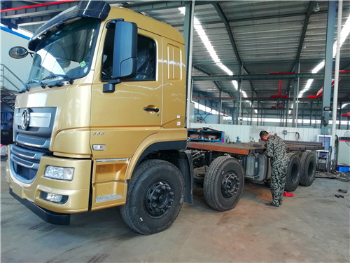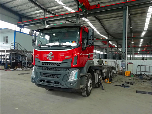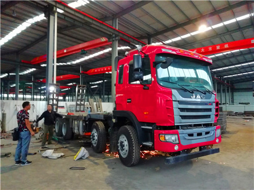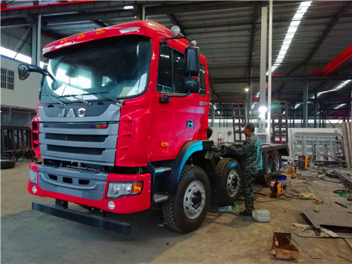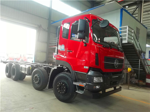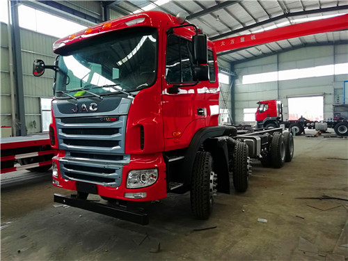 江淮前四后八采用江淮HFC3311P2K4H38AF底盘。 潍柴300马力WP7.300E51国五发动机,法士特高低 10 档变速箱,11.00R20 钢丝胎整车尺寸10500×2500×3450。