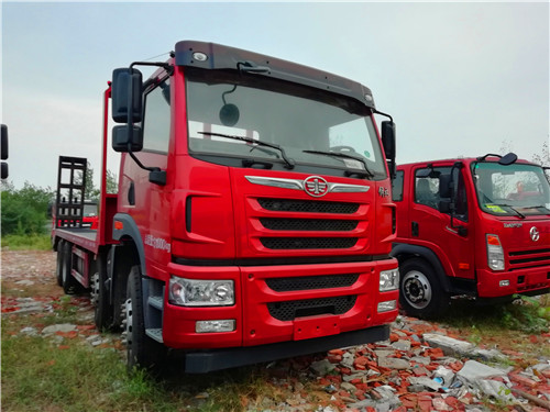 平板运输车也叫平板拖车、平板车、推土机运输车、挖土机运输车、、钩机运输车、挖机平板车、挖机平板拖车、挖掘机拖车、挖掘机板车、钩机平板车、钩机平板拖车等;后面带爬梯,主要用于运输一些像挖掘机,装载机,收割机一样的不可拆卸物体;平板运输车广泛用于工厂,工地等大型生产或工程所在地,平板运输车的承重能力强的特点使其在经济发展过程中起了重要作用。
