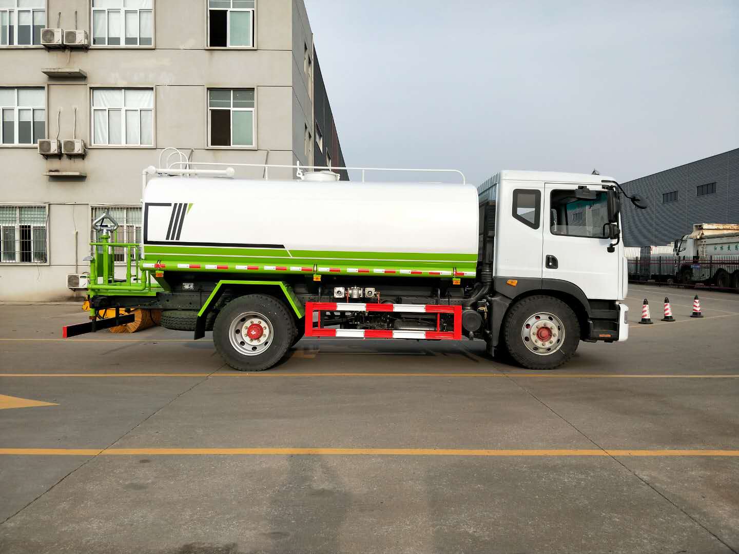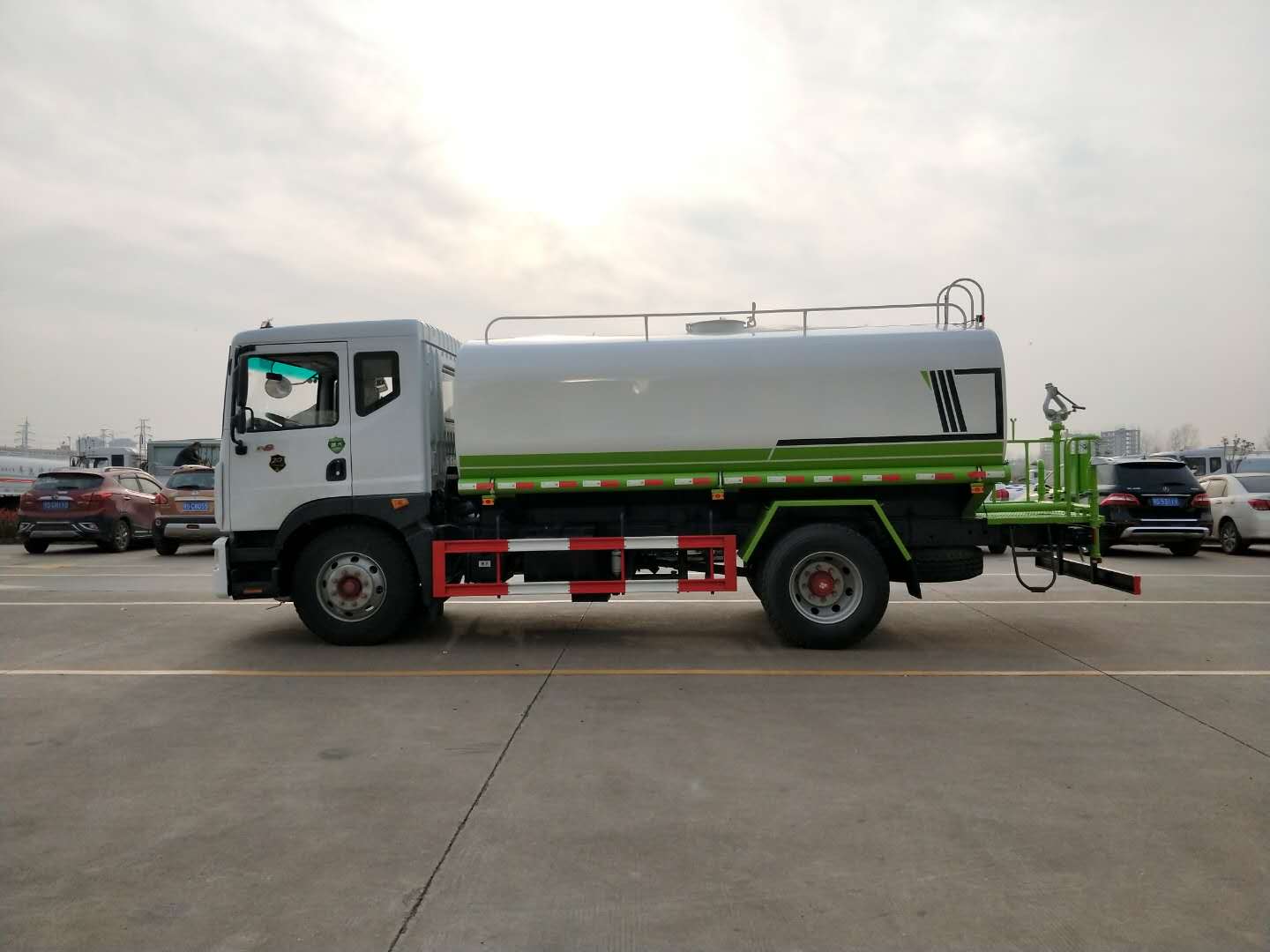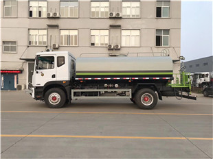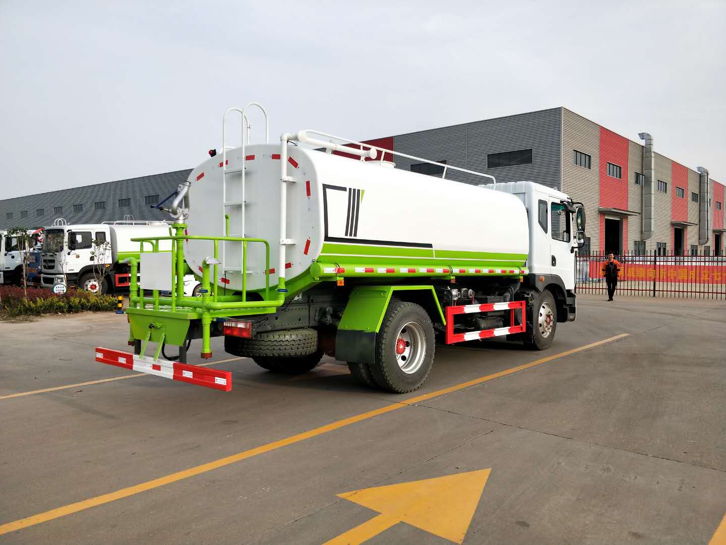 东风15吨洒水车其余标准配置为:前冲、后洒、侧喷、高位花洒、后工作平台、平台上安装360度可调节绿化水炮,带自流阀、滤网、消防接口(可连接消防栓取水,可作应急消防用),罐前量管(观察罐内水位)、罐后爬梯、罐上罐口、带简易护栏、罐侧双炮筒、炮筒内3米长钢丝塑胶抽水管两根,罐体表面双层油漆工艺,防锈、耐腐蚀,其余由厂家标配。