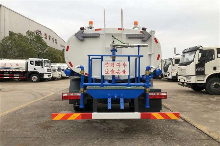 东风15吨洒水车罐体容积14方,可拉14吨水,罐体采用4mm厚Q235B优质碳钢板制作,配亿丰品牌大功率QZ80-60/90型洒水车专用水泵(可选装杭州威龙水泵),可自吸自排,水泵垂直吸程≧7米,抽满一罐水时间:10分钟左右,可连续喷洒作业3-4小时。
