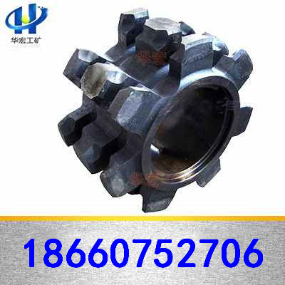 40T型链轮,也叫七星轮、机头轮,适用于SGB620/40T型刮板机。传动链轮由链轮、半滚筒组成。采用6条M20螺栓组成一整体,40Cr材质,锻打件,机加工处理,啮合齿面经淬火处理,刮板机链轮具有强度高、耐磨性强等特点。锻造链轮的使用寿命为铸钢链轮的2倍以上,传动链轮与减速器第四轴以花键相连接,第四轴花键前端的平键和滚筒连接。山东非同机械有限公司刮板机链轮型号齐全,适用于西北煤机、张家口煤机、山西煤机型刮板传输机专业配件,配件均为锻造件,经过调制热处理。产品经ISO9001质量体系认证,产品质量值得信赖