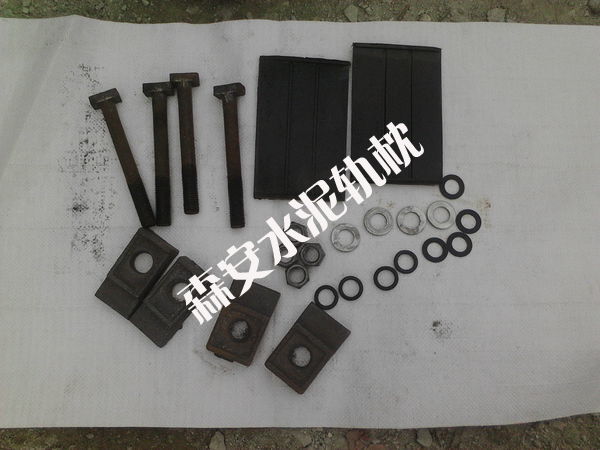 轨道水泥枕木配件分两类,连接两根钢轨端部的零件称为接头连接配件;连接钢轨和轨枕的配件称为中间连接配件,即扣件。接头连接零件使车轮能顺利滚过钢轨接头,并保持前后两个钢轨协调工作。扣件将钢轨和轨枕连为一体构成轨道框架,使两个钢轨保持正确的相对位置;扣件提供足够的压力,防止钢轨倾覆,阻止钢轨的纵向移动。