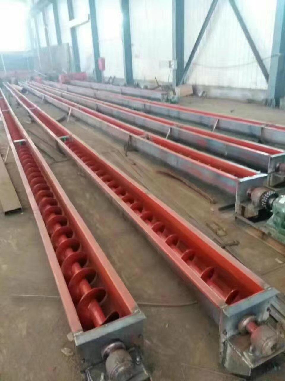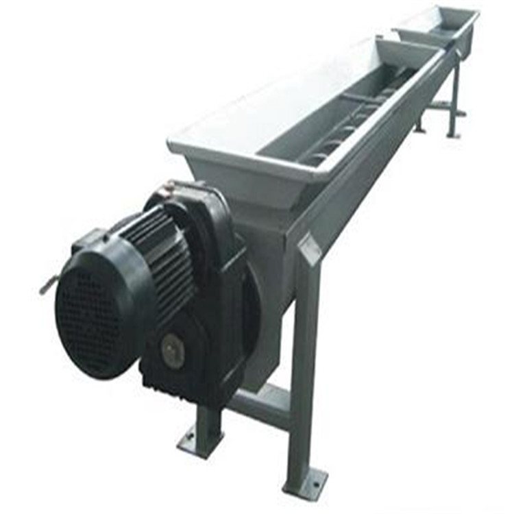 螺旋输送机工作原理是什么:为了使螺旋轴处于较为有利的受拉状况,一般都将驱动设备和卸料口安放在运送机的同一端,而把进料口尽量放在另一端的尾部附近。 旋转的螺旋叶片将物料推移而进行运送,使物料不与螺旋运送机叶片一同旋转的力是物料本身重量和螺旋!当螺旋轴翻滚时,由于物料的重力及其与槽体壁所发作的摩擦力,螺旋输送机是一种利使物料只能在叶片的推送下沿着运送机的槽底向前移动,其状况如同不能旋转的螺母沿着旋转的螺杆作平移运动相同。物料在中间轴承的运移,则是依托后边行进着的物料的推力。所以,物料在运送机中的运送,完全是一种滑移运行。