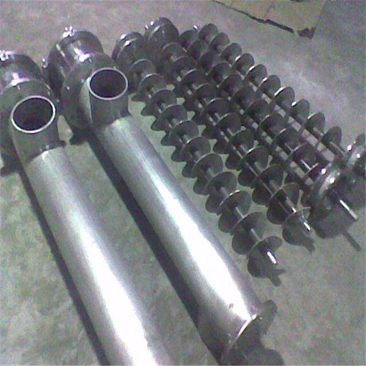 4、该机的螺旋叶片采用盘形钢带轧制或单片组焊而成的整体连续叶片,其螺旋面精度高,内孔、外径、螺距尺寸精确,输送工况最佳。
