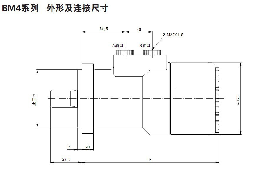 以轴向柱塞液压马达为例,阐明液压马达如何将液压能量转换为旋转模式的机械能输入。轴向柱塞液压马达的工作原理。旋转斜盘1和油分配板4是固定的,柱塞3可在气缸2的孔中移动。斜盘中间线和气缸中间线以倾斜角δ相交。当高压油通过油分配板的窗口进入气缸的柱塞孔时,高压腔的柱塞被弹出并压在旋转斜盘上。旋转斜盘对柱塞的反作用力F分解为轴向分力Fx和垂直分力Fy。 Fx与作用在柱塞上的液压相等,并且Fy产生用于使气缸旋转的扭矩,这使得轴5旋转。液压马达产生的扭矩应该是高压腔内所有柱塞产生的扭矩之和,R-气缸上散射圆的半径; θ-第i个柱塞的夹具和圆柱角度的垂直中间线。