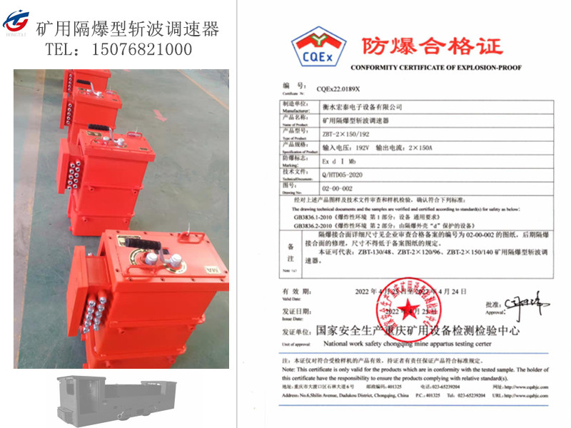 宏泰电子设备有限公司生产的矿用蓄电池电机车斩波调速器(型号ZBT),ZBT系列蓄电池隔爆型IGBT斩波调速装置,本产品适用于矿山蓄电池电机车是为矿用蓄电池机车设计的调速控制部件,以代替电阻调速,可控硅脉冲调速的控制器。本装置由IGBT斩波器,控制器,DC-DC开关电源和隔爆箱组成。它以IGBT作为开关元件,电路先进,结构新颖,工作频率高达2Kh,启动平滑,运行平稳,操作简单维修率小,工作可靠等优点。我公司生产的隔爆型电机车斩波调速器通过CMA和CNAS国家体系认证,我公司产品所用电子元件为优质配件,质量可靠,诚信经营。本装置独到之处是电机车两个电机分别由独立的IGBT控制,提高了电路可靠性,过流、过热等保护功能齐全。
