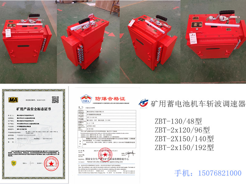 本装置为系列产品,分为ZBT-130/48型、ZBT-2x120/96型、ZBT-2X150/140型、ZBT-2x150/192型四种规格外形设计除保证隔爆和散热性能外,外形尺寸考虑了 2.5T 5T 8T和12T机车驾驶室空间,与各种型号的矿用增安型和隔爆特殊型蓄电池机车均可配套使用。