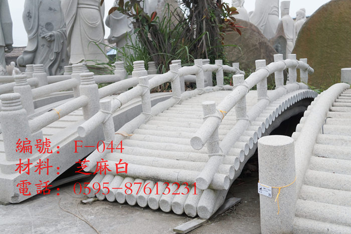 惠安景观石桥,园林景观拱桥,竹排桥石雕惠安石雕—福建省华峰盛石业雕刻有限公司原名为“华峰盛石雕厂”,是一家集石雕艺术设计,生产,施工安装为一体的大型综合石雕生产企业。自从1989年公司成立以来,我们不断致力于石雕工艺的研究与创新,累积了丰富的工艺水平和一支专业的石雕管理团队。公司特别擅长于惠安传统石雕的设计,雕刻。如寺庙古建、大型石雕佛像、观音石雕像、石雕龙柱,山门,石牌坊,石凉亭以及现代大型石喷泉,景观雕塑,园林庭院石雕,市政园林城市雕刻。既保持发扬了传统艺术风格,又富有现代艺术风韵,在全国石雕行业独树一枝,产品销往全国各地以及东南亚,欧美各国。凭借着卓著的信誉和精湛的艺术,我司设计承接了各个工程:如云南晋龙园总长149米的九龙壁雕刻、甘肃兰州仁寿山19.5米的寿星,黑龙江嘉荫48米高的恐龙塔、雷迪森酒店直径5米的喷泉、象山仲尼村石牌坊、云南玉溪聂耳桥两端聂耳主题雕塑、江苏九龙山景区观音景墙、南通市“江海龙腾”喷泉广场、韩国南弥勒寺35米高坐如来等。