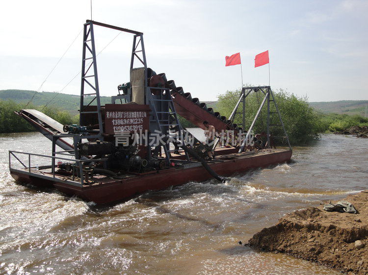 河道淘金船按照开采方式可分为:链斗式淘金船、射吸式淘金船、绞吸式淘金船等几种。