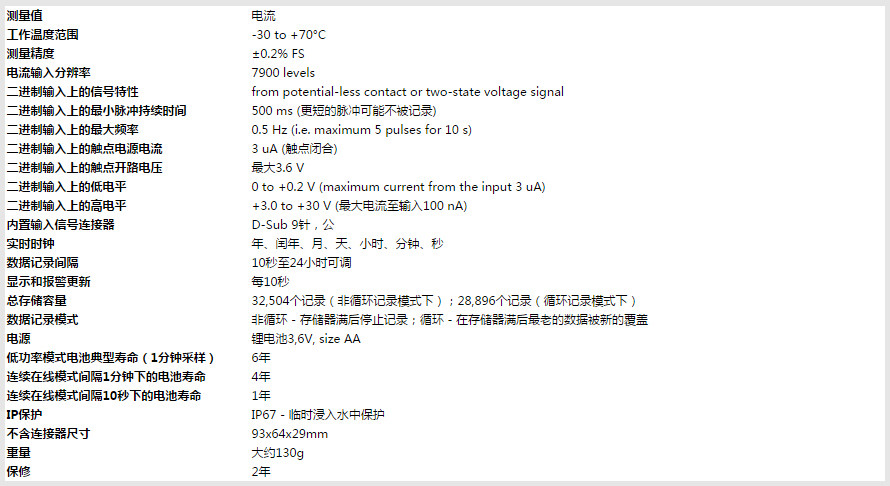 该款数据记录仪专用于记录电流。数据被保存到非挥发性存储器。可通过USB、RS232、GSM或以太网接口和适当的电缆把数据传输到电脑。