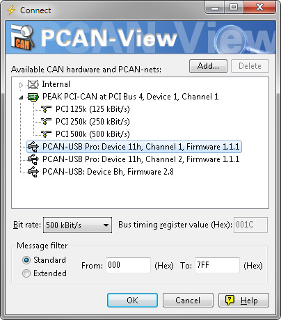 PCAN-View 附加在我们的每款PCAN PC硬件产品中,能够快速和方便地初始化硬件运作。所有可用的PEAK CAN接口都列表在连接对话框内。在选择硬件和比特率之后,用户就可访问所有软件功能、特定硬件设置、和信息。