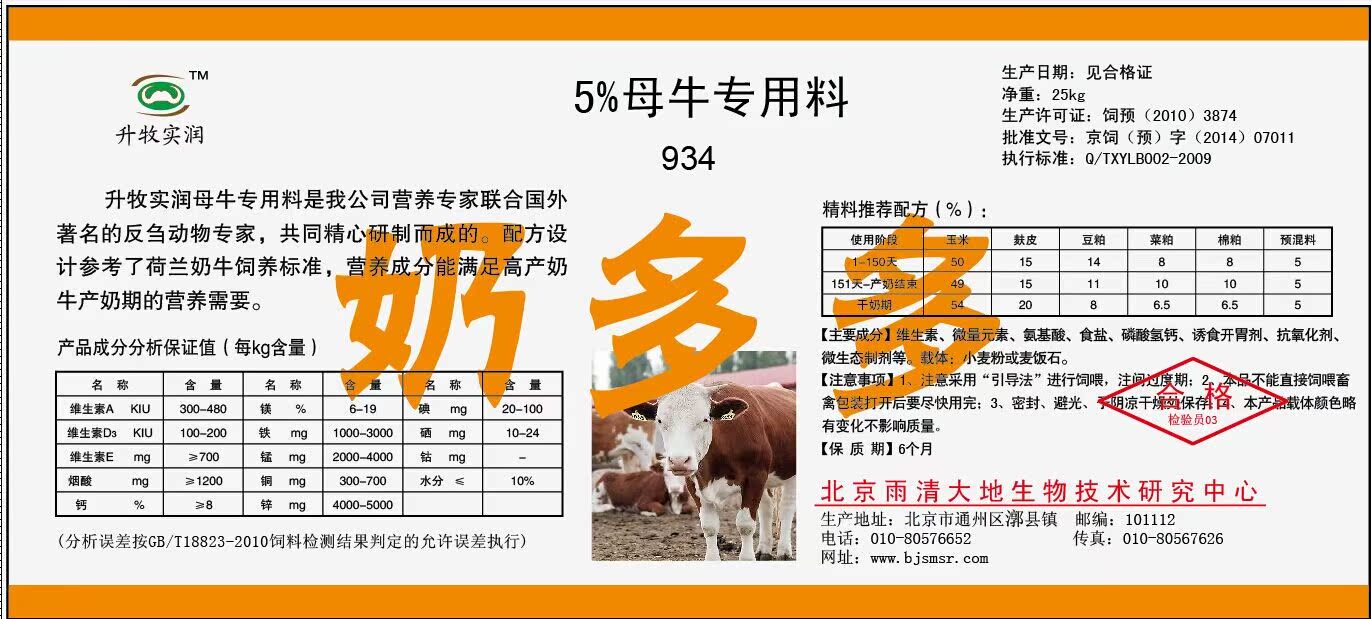 5%奶牛复合预混料是北京升牧实润公司组织多名动物营养专家,根据国内外奶牛最新营养研究进展结合产奶期奶牛对营养需求的特点,研制出一种能满足奶牛产奶期营养需要的绿色高档奶牛专用预混料--5%奶牛预混料~
