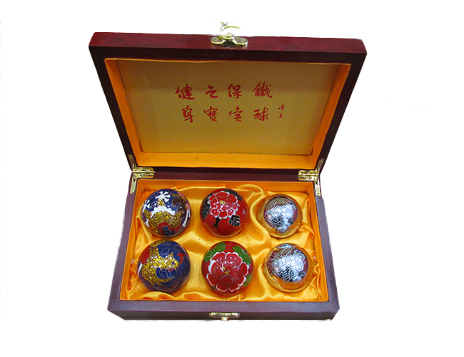 铁球(健身球)不仅是娱乐工具,而且有着群众观健身功能。球的外表明光铮亮,其内部结构复杂,球内有球,并装音板,两个为一付,俗称"一公一母"。拿在手中运转坊来,音响各异,有高有低,清脆悦耳,既能收到调筋理神之功效,还能在铁球的缠绵悦耳音响中陶冶性情。旧时官宦、商贾进京往返于保定余中,必购买此 物,作馈赠亲友或达官显贵的见面礼。