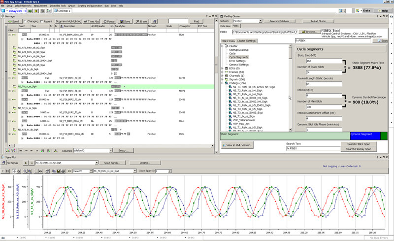 Vehicle Spy试用版可用EVB的FPGA监测FlexRay。与试用版不同,专业版没有时间限制并且支持其它网络,例如CAN。