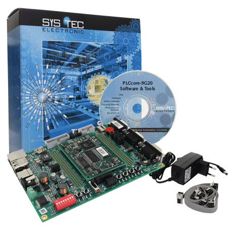 PLCcore-9G20, 开发板 ECUcore-9G20, 电源, 电缆套件, CD OpenPCS - IEC 61131-3 IDE, DVD VMware Image Linux -