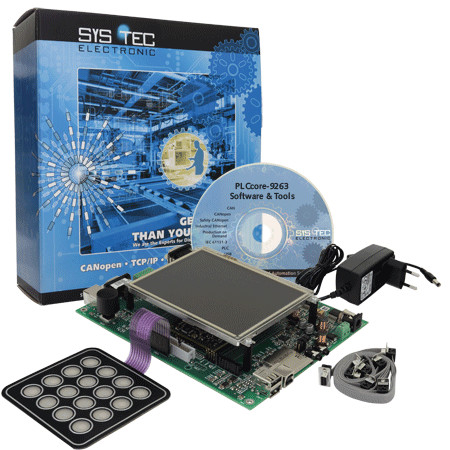 PLCcore-9263 - HMI 可选, 开发板 ECUcore-9263, 电源, 电缆套件, CD OpenPCS - IEC 61131-3 IDE, DVD VMware Image Linux -