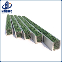 采用高强度铝合金基座作为框架,在铝合金凹槽内填充金刚砂混合物。其颜色可做成多种多样,产品牢固,精美。