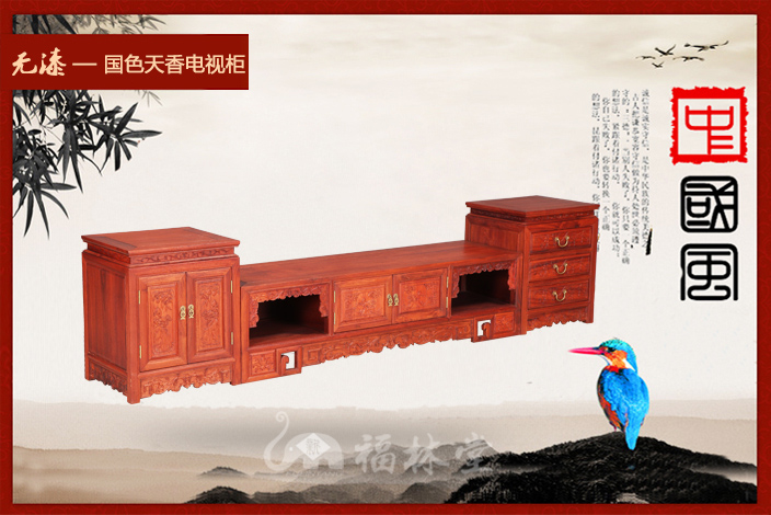 新福林堂红木家具缅甸花梨厂家国色天香电视柜
