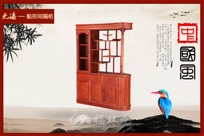 新福林堂缅甸花梨厂家红木家具船型间隔柜