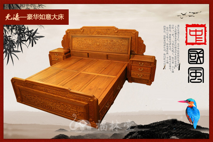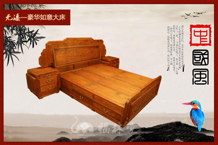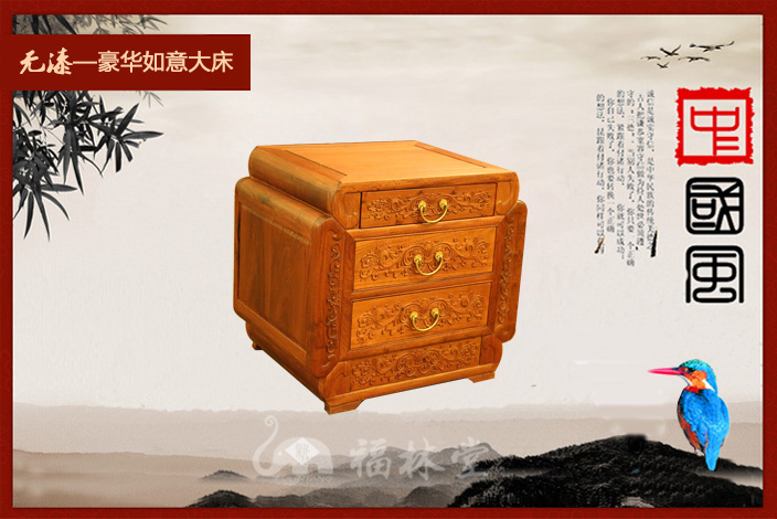 美观大气,彰显东方神韵的艺术色彩,在床两侧都设有两 个抽屉,更加方便现代人的生活习惯。床头床