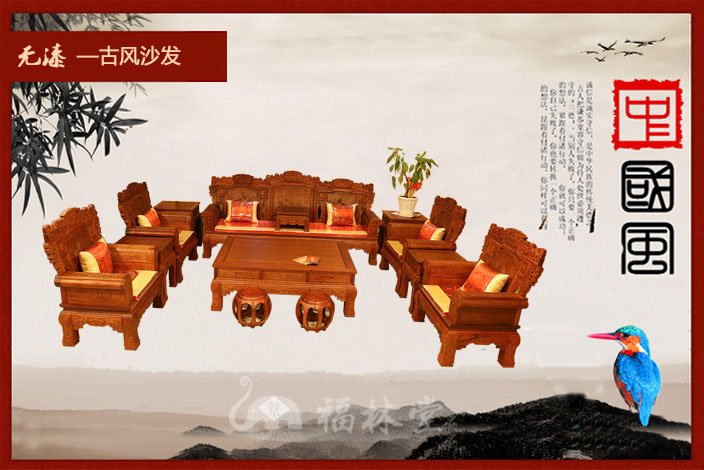 古风沙发,承上古工艺取明清辉煌,集才艺之尊,以手工结合电脑雕刻技术,
