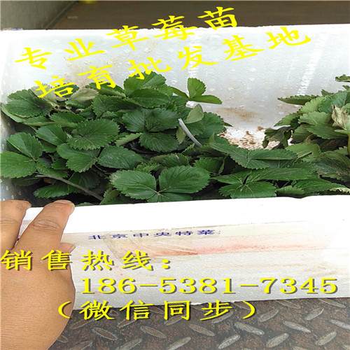 福建福州市妙香草莓苗(种苗繁育)基地 福建福州市妙香草莓苗(种苗繁育)基地---- [欢迎观看本基地网页,红颜草莓苗一亩地栽多少棵/购买优质红颜草莓苗,章姬草莓苗(甜宝,牛奶草莓)、香蕉草莓苗、甜查理草莓苗,白草莓苗,桃熏草莓苗,露天新明星草莓苗等,到【山东国迎草莓苗直销基地】,因为直销所以价格便宜,欢迎实地选购草莓苗,本基地随时欢迎各位新老客户实地参观考察,因为专业所任值得放心,基地电话:18653817345 或13793811946(吴经理)欢迎您 白草莓苗大棚优质首先品种 品种推荐:章姬草莓苗:(又名:甜宝) 章姬果实整齐呈长圆锥形,果实健壮,色泽鲜艳光亮,香气怡人。果肉淡红色、细嫩多汁、浓甜美味、回味无穷,在日本被誉为草莓中的,一级序果平均40克,大时重130克,适合在城市市郊游客下地自摘发展。章姬草莓苗植株长势强,中抗炭疽病和白粉病,丰产性好。 红颜草莓苗:果实圆锥形,种子黄而微绿,稍凹入果面,果肉橙红色,质密多汁,香味浓香,糖度高,风味,果皮红色,富有光泽,韧性强,果实硬度大,耐贮运, 该品种果个较大,大可达100多克,一般30至60克,硬度大于所有日本品种,果面红色、有光泽。果形果色明显优于丰香。该品种生长健壮,多级花序,结果期长,产量高,一般亩产3000至3500斤。红颜草莓的缺点是不抗白粉病,育苗不易,很容易几天内全军覆没。 在嘉年华的场馆里,随处可见立体栽培技术的应用,比如展馆中草莓立体无土栽培技术就有7种,包括悬挂式、立柱式、支架式、电动可升降吊挂式等。这些各有优势,有的便于、便于采光,有的了空间利用率,还有的可以种植密度和果实产量。 草莓苗种植技术、大棚管理方法任何问题都可来电免费咨询《13793811946》吴经理!!