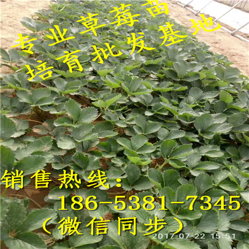云南楚雄州牛奶草莓苗(苗圃直销)优惠价格 云南楚雄州牛奶草莓苗(苗圃直销)优惠价格---- [欢迎观看本基地网页,红颜草莓苗一亩地栽多少棵/购买优质红颜草莓苗,章姬草莓苗(甜宝,牛奶草莓)、香蕉草莓苗、甜查理草莓苗,白草莓苗,桃熏草莓苗,露天新明星草莓苗等,到【山东国迎草莓苗直销基地】,因为直销所以价格便宜,欢迎实地选购草莓苗,本基地随时欢迎各位新老客户实地参观考察,因为专业所任值得放心,基地电话:18653817345 或13793811946(吴经理)欢迎您 白草莓苗大棚优质首先品种 品种推荐:章姬草莓苗:(又名:甜宝) 章姬果实整齐呈长圆锥形,果实健壮,色泽鲜艳光亮,香气怡人。果肉淡红色、细嫩多汁、浓甜美味、回味无穷,在日本被誉为草莓中的,一级序果平均40克,大时重130克,适合在城市市郊游客下地自摘发展。章姬草莓苗植株长势强,中抗炭疽病和白粉病,丰产性好。 红颜草莓苗:果实圆锥形,种子黄而微绿,稍凹入果面,果肉橙红色,质密多汁,香味浓香,糖度高,风味,果皮红色,富有光泽,韧性强,果实硬度大,耐贮运, 该品种果个较大,大可达100多克,一般30至60克,硬度大于所有日本品种,果面红色、有光泽。果形果色明显优于丰香。该品种生长健壮,多级花序,结果期长,产量高,一般亩产3000至3500斤。红颜草莓的缺点是不抗白粉病,育苗不易,很容易几天内全军覆没。 记者从贵州省农委了解到,目前,全省县乡两级基层农技推广队伍长期在1.5万人左右。他们长期扎根基层,将“智慧”种进田里,为农民群众排忧解难,促进农业增产、农民增收,成为了农民群众的贴心朋友。 草莓苗种植技术、大棚管理方法任何问题都可来电免费咨询《13793811946》吴经理!!