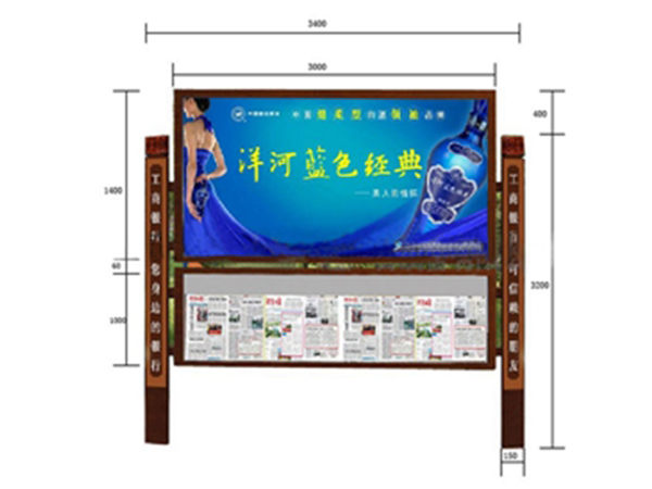 高端智能电子阅报栏为我公司研发产品之一,本产品由多画面滚动灯箱箱体、双面读报栏箱体、开模造型立柱、LED显示屏等部分组成。结构新颖、造型美观,将公益宣传与高档造型融于一体,是各地城市建设的。