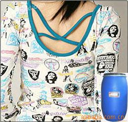 本品是一种新型仿染料印花水浆,属阴离子型,在织物上可起到交联及自交联作用。适用于毛衣、毛巾或其它高要求无手感的织布涂料印花,由于本产品具有无手感特性,用本产品印出来的产品手感与染料印花手感一模一样,因此用涂料印花代替染料印花变为可能。本品不含甲醛,不含壬基苯酚,不含邻苯二甲酸酯,因此是织物印花最理想的无毒性环保产品。