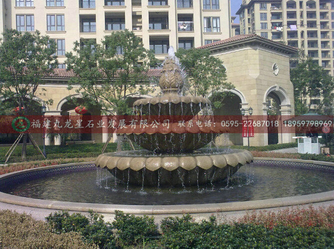 石雕水钵大理石喷泉石雕跌水盆黄锈石喷水池