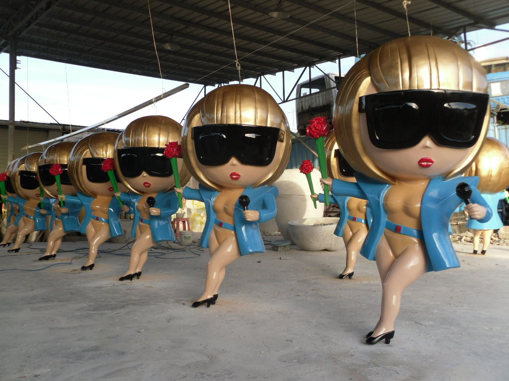 【玻璃钢产品特点】品采用业内优质的树脂和无捻粗纱铂金纤维布经过人工手糊合成,结构结实牢固耐用。表面首先经过专业师傅采用汽车原子灰多次精心打磨,无裂痕,无汽泡砂眼,纹理细腻,色泽均匀。再经过三次底色油漆喷涂,最后喷汽车漆和PU光油。 就算摆放户外日晒雨淋也不容易掉色 【适合场所】本产品适合公园,广场,商场,游乐场以及其他公共场所室内外装饰及摆设。