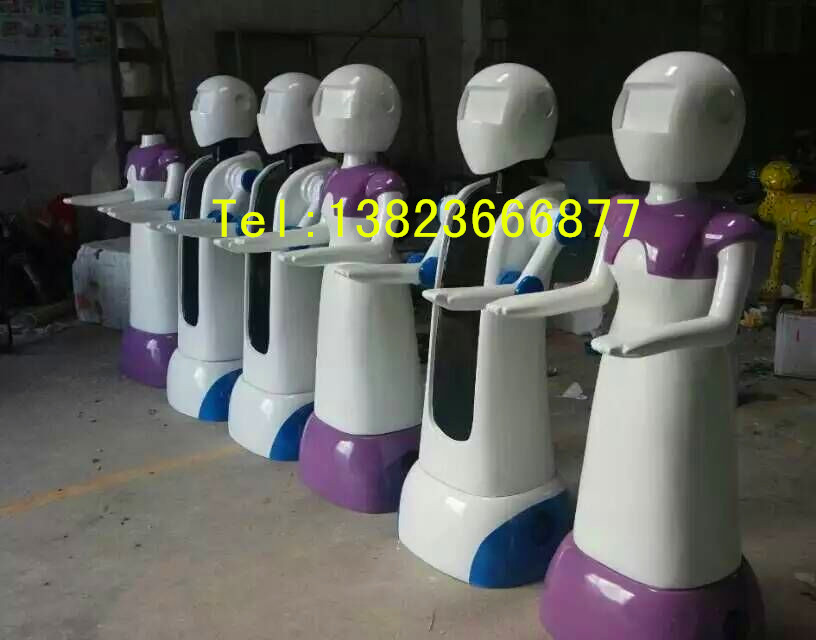 我厂艺术创作与创新能力雄厚,目前拥有一支高水平的雕塑设计师、制模师以及经验丰富的安装施工队伍,吸收消化国外先进的玻璃纤维强化技术,具备完善的设计能力。我们本着大胆创新、勇于突破的精神,以追求卓越为导向,坚持宁缺勿滥为原则,始终立于雕塑业蓬勃发展的前列。另外,我司产品产品具有防腐、绝缘、抗紫外线、耐磨、防水、防潮、抗冲击力、不老化等特点,经省技术监督家具产品质量检验合格。【产品名称】:玻璃钢送餐机器人雕塑 玻璃钢制品